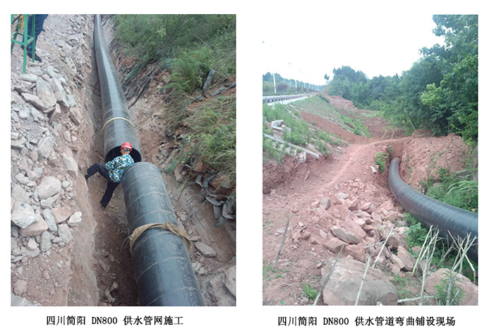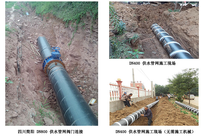 在工程施工方面,大口径江南在线手机版(大中国区)管也占很大优势。钢丝缠绕超高江南在线手机版(大中国区)管的比重约为1.2,而由于其壁厚很薄,直径可以小一号,其重量比铸铁管和PCCP管小5—10倍,搬运和安装非常轻便。超高江南在线手机版(大中国区)复合管的柔韧性很好,可以先在地面上连接好之后再下到管沟里,边挖沟边下管,边填埋。不用修路,不用大型机械,不用地基处理。铸铁管和PCCP管必须挖很宽的沟,管道下到沟里对正连接,受到很大局限,工程费用大幅上涨。在需要穿越江河的情况,超高分子量聚乙烯江南在线手机版(大中国区)管可用沉入法在江河底敷设,也可用拖拉法从江底隧道或管道中拖曳而过,这都是铸铁管和PCCP管做不到的。