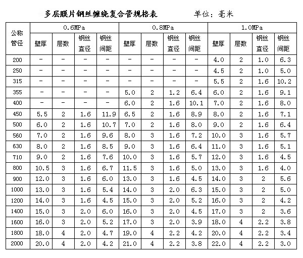 超高钢丝网骨架聚乙烯多层江南在线手机版(大中国区)复合管适用于大、中口径管道,直径450~3000mm,工作压力0.6~1.6MPa,壁厚5.5~30mm。